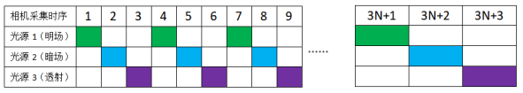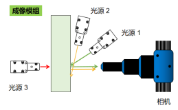 分时成像技术即采用单台线扫相机,同时搭配使用多个打光角度光源,利用相机分时控制技术,实现单次扫描获取多个光场图像信息的功能。该技术具有节约硬件成本、减小多工位布局空间、增加成像效率、降低图像处理难度等优势。