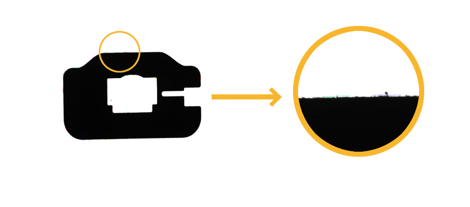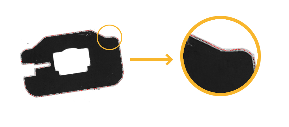 因为纳米晶隔磁片需要安装在智能设备中,因此对其厚度及精度会有非常严苛的要求,而在纳米晶隔磁片的制造工艺中,经热处理、覆膜叠片、碎磁和模切等数道程序后,产品的边缘会有毛刺状残留,如果不将这些残留精准地切除掉,在装配进智能设备成品后会影响整体性能。因此需要引入视觉系统,准确识别毛刺位置并引导激光工艺去除残留毛刺。
