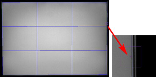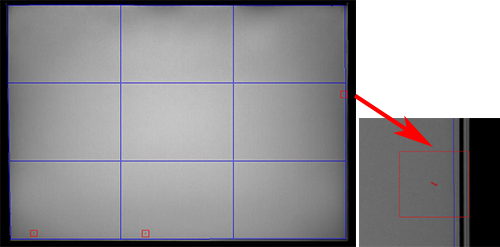 大恒图像设计的背光模组显示缺陷检测系统选用代理产品韩国Vieworks大靶面面阵相机及德国Linos大靶面镜头进行采图,配合德国专业图像处理软件HALCON,通过对图像进行标记训练,实现对缺陷的精准定位及检测。