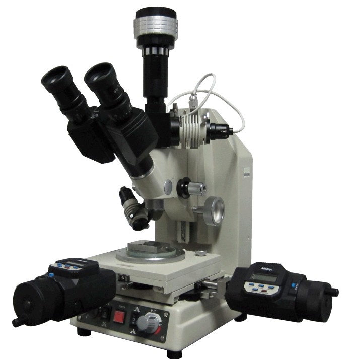 测量显微镜107JA,采用透、反射的方式对工件长度和角度作精密测量。特别适用于录象磁头、大规模集成电路线宽以及其它精密零件的测试。广泛地适用于计量室、生产作业线及科学研究等部门。