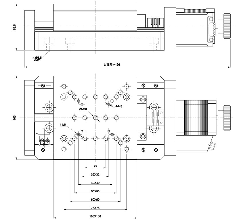 GCD-202100M75x75100直线导轨滚珠丝杠40.001<0.00340mm/s1.8°20kg5kg25X(25~75)
